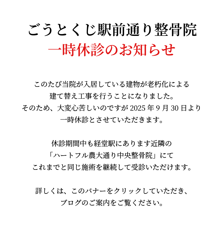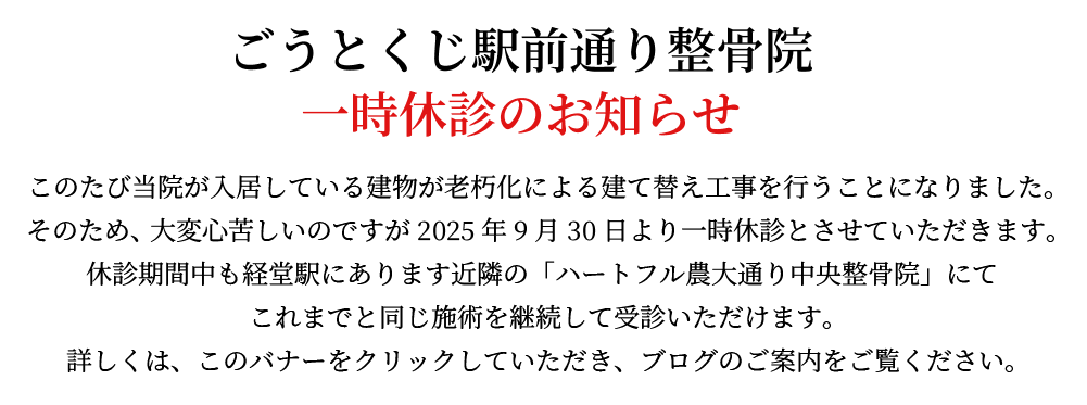 地域一番の整骨院!ごうとくじ駅前通り整骨院へ